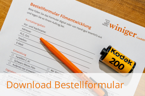Sie möchten uns Ihre Filme per Post zukommen lassen? Kein Problem! Einfach Formular herunterladen, ausfüllen und zusammen mit den zu entwickelnden Filmen per Post versenden. Achten Sie darauf die Filme gut zu polstern, damit diese beim Transport nicht beschädigt werden.